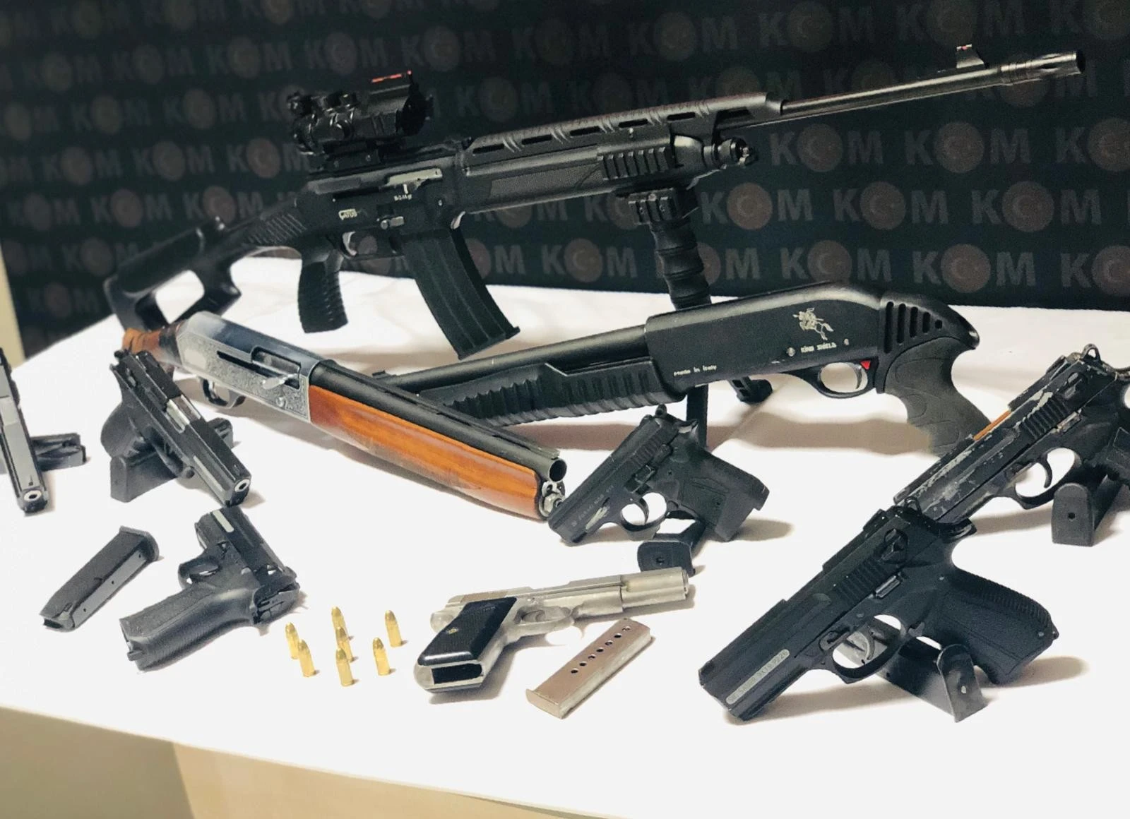 Şahsı bir süre takibe alan ekipler, yaptığı operasyonla M.K.'yı 6 adet tabanca, 3 adet tüfek, 1 adet ses ve gaz tabancası, 1 adet dürbün ve 12 adet fişekle birlikte yakalayarak gözaltına aldı. Emniyet Müdürlüğündeki işlemleri tamamlanan M.K. korona virüs tedbirleri kapsamında özel koruyucu kıyafetle adliyeye sevk edildi.