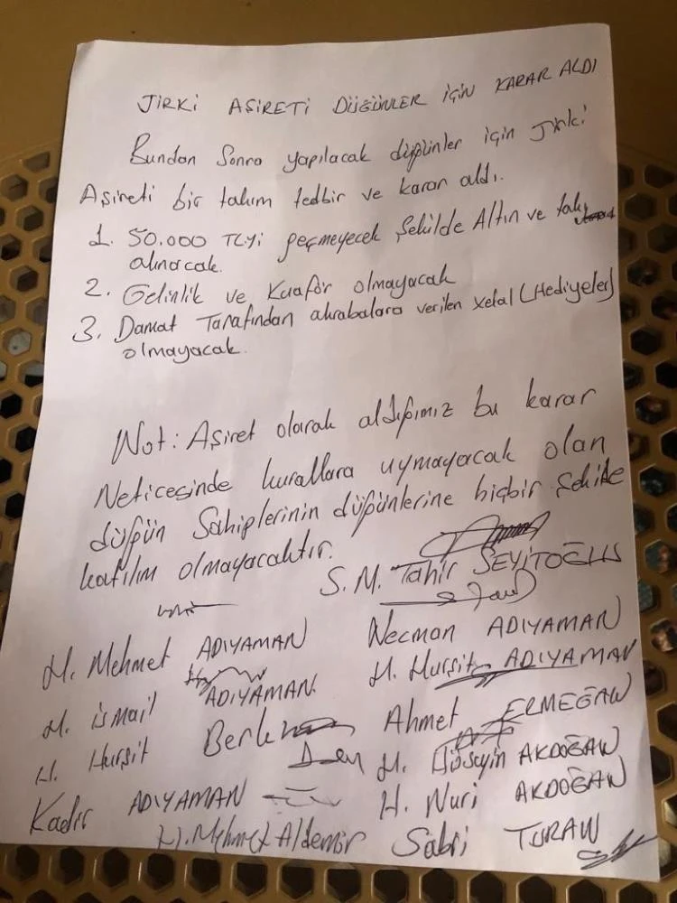 Alınan kararın altında aşiret liderlerinin isim ve imzaları yer aldı.