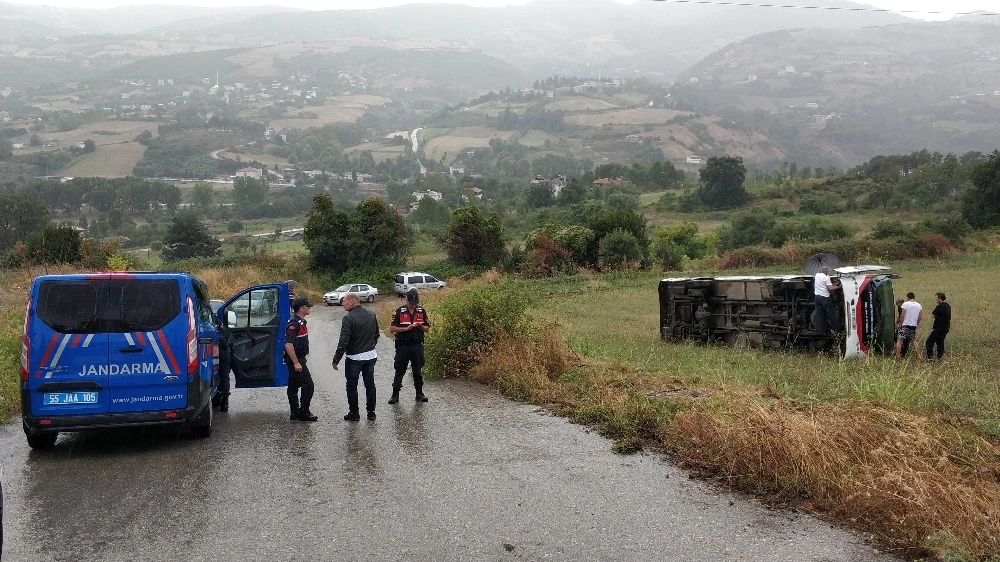 Edinilen bilgiye göre Akif Topsakal idaresindeki 55 BS 486 plakalı Samsun Büyükşehir Belediyesi Özel Halk Otobüsü, rampa aşağı inerken sağanak yağış dolayısıyla kayarak direksiyon hakimiyetinin kaybedilmesi sonucu tarlaya yuvarlanarak yan yattı.