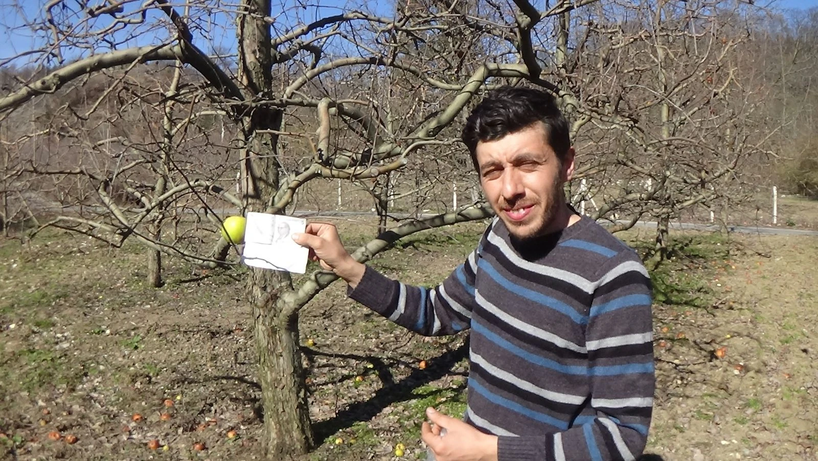 İnegöl’e bağlı kırsal Süle Mahallesinde çiftçilik yapan Fatih Keskin isimli vatandaş babasıyla birlikte kendilerine ait olan elma bahçesinde budama yaptıkları sırada ağaç dalına asılı bir poşet gördü. İlk bakışta çöpler için asıldığını düşündüğü poşette yaklaştıklarında içerisinde 5 TL para ile bir not bırakıldığını farketti. Silinme noktasına gelen notu güçlükle okuyan Keskin, duygu dolu anlar yaşadı. Notta bir kişi hamile olan eşi için aldığı elma için para bıraktığını ve haklarını helal etmelerini istedi.