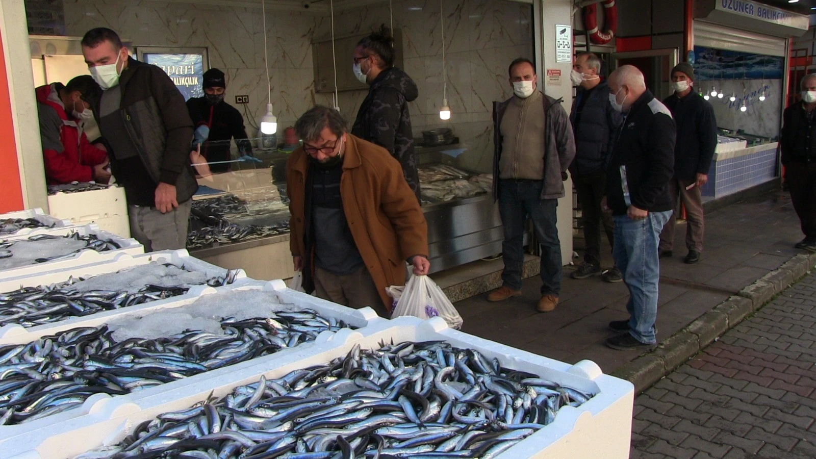 İlçedeki Kars Caddesi üzerindeki balıkçı dükkanında gerçekleştirilen hamsi kampanyası ara ara uzun kuyrukların oluşturdu.