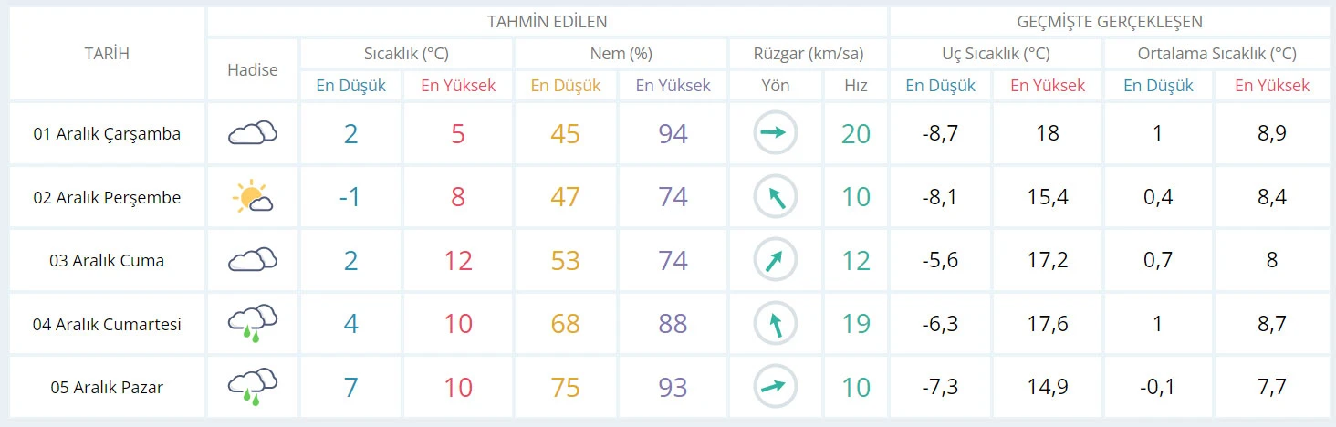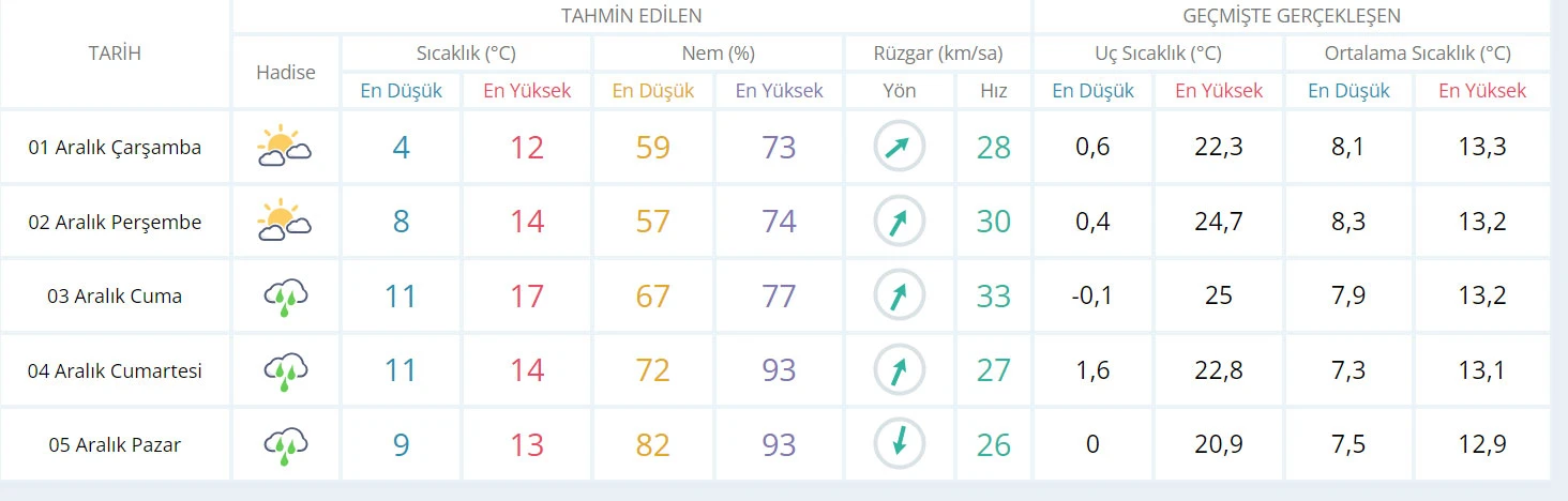 Meteoroloji Genel Müdürlüğünden alınan tahminlere göre, hava sıcaklığının yurt genelinde hissedilir derecede (4 ila 12 derece) azalacağı, genellikle mevsim normallerinin altında seyredeceği tahmin ediliyor. Rüzgarın güney ve güneybatı yönlerden Doğu Akdeniz’in doğusu, Doğu Karadeniz'in iç kesimleri ile Doğu ve Güneydoğu Anadolu’da yer yer kısa süreli fırtına (50-90 km/saat) şeklinde eseceği tahmin ediliyor.