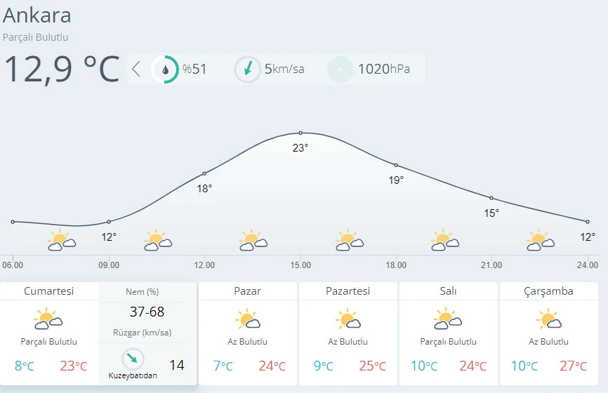 Meteoroloji Genel Müdürlüğünden alınan tahminlere göre, hava sıcaklığının ülke genelinde 2 ila 5 derece artacağı tahmin ediliyor. Rüzgarın ise iç ve batı kesimlerde kuzey ve kuzeybatı, güneydoğu kesimlerde batı ve güneybatı yönlerden hafif, ara sıra orta kuvvette esmesi bekleniyor.