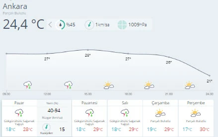 Ankara: Parçalı ve çok bulutlu, öğle saatlerinden sonra yerel olmak üzere aralıklı sağanak ve gök gürültülü sağanak yağışlı 28