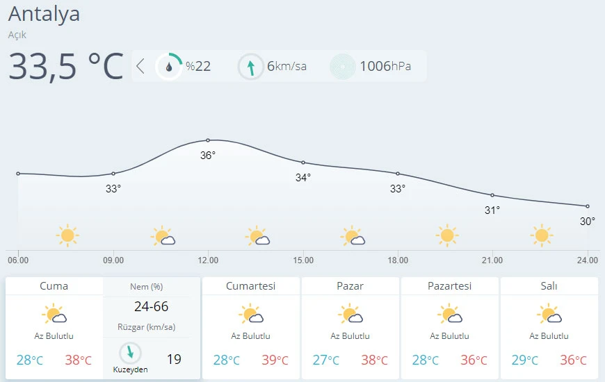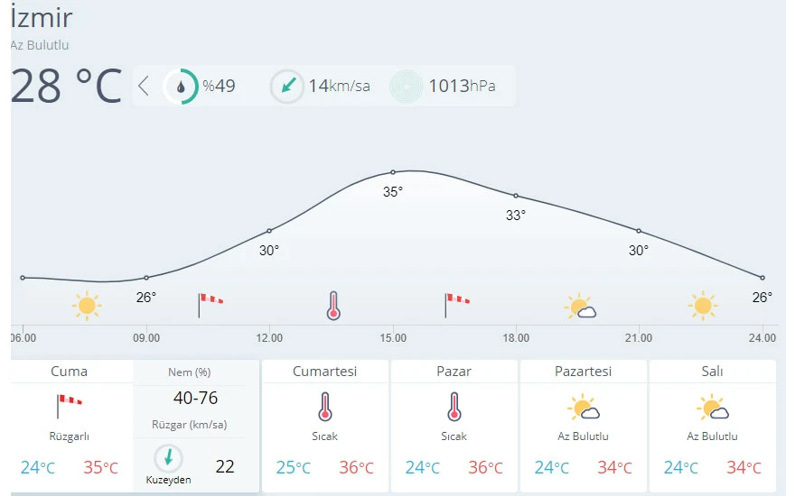 Bazı illerde beklenen hava durumuyla günün en yüksek sıcaklıkları ise şöyle: