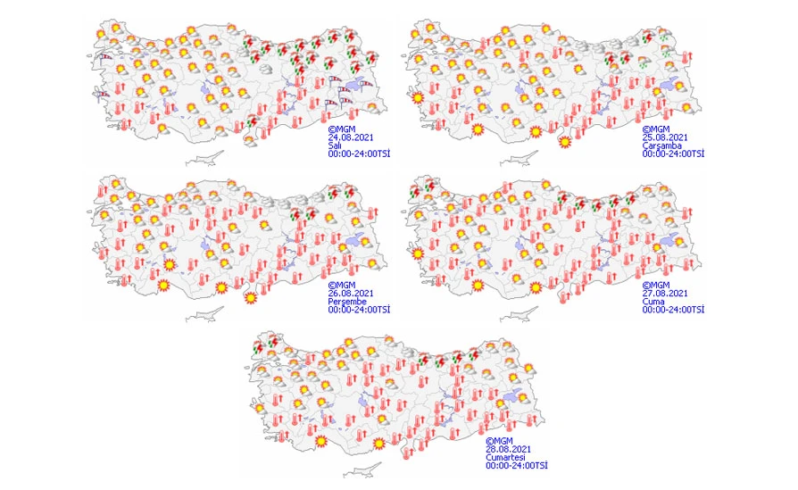 Meteoroloji Genel Müdürlüğünden alınan tahminlere göre, hava sıcaklığında önemli bir değişiklik beklenmiyor. Güney kesimlerde yer yer mevsim normalleri üzerinde, diğer yerlerde mevsim normalleri civarında seyredeceği tahmin ediliyor.