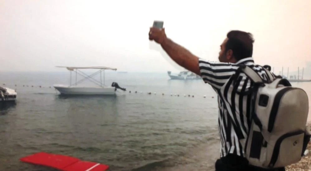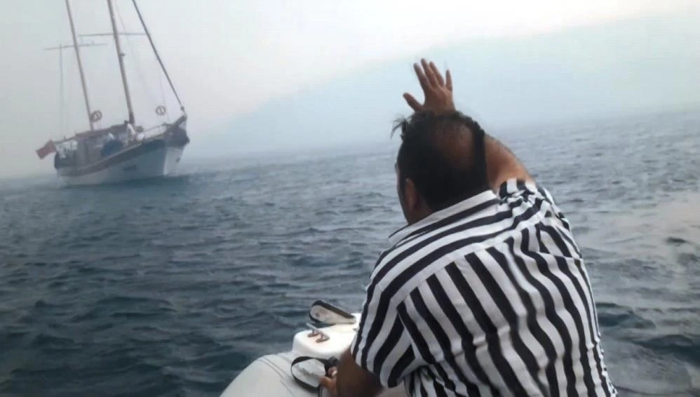 Yangın ve yoğun duman nedeniyle karayolu ulaşımının sağlanamadığı bölgede mahsur kalan haber ekibi, araçlarını park halinde bırakarak Çökertme Koyu’na indi. O anlarda yaşanan telaş ise kameralara yansıdı. Araçlarını park ettikleri arazideki yangını hortumlarla söndüren ekip, sonrasında hızlıca bölgeden uzaklaşarak, sahil bandına indi.