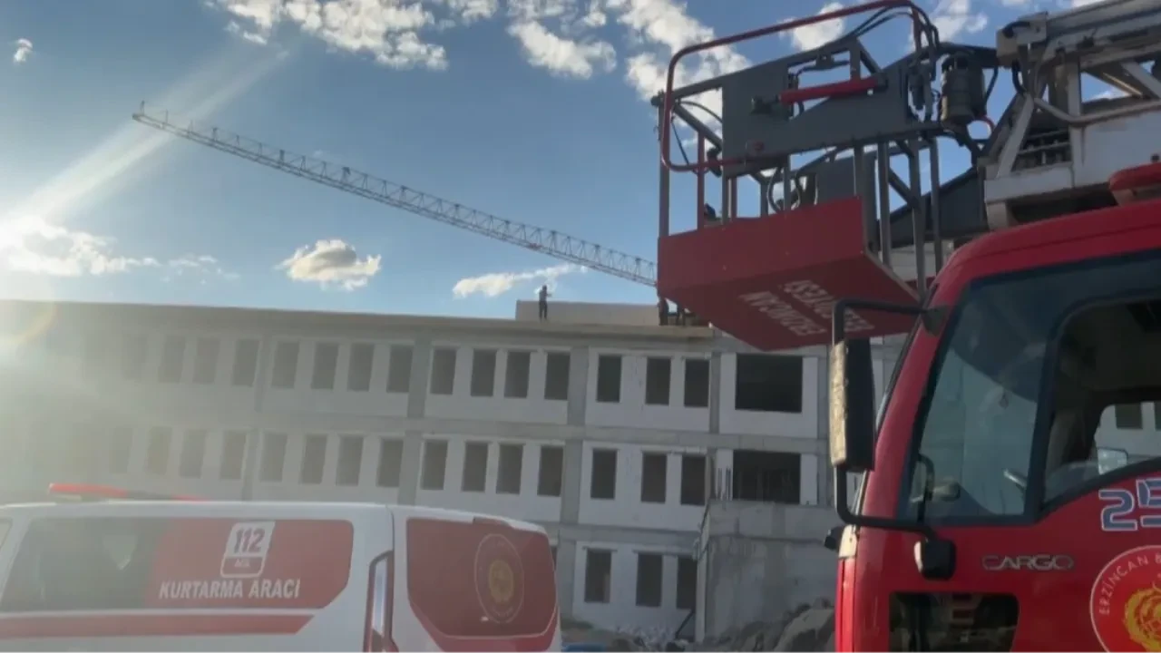 Erzincan’da yapımı devam eden Emniyet Müdürlüğü hizmet binası inşaatında çalışan üç işçi, müteahhit taşeron firmasının yevmiyelerini vermediği gerekçesiyle inşaatın çatısına çıkarak eylem yaptı. Alacaklarının ödenmesini talep eden işçiler alacakları hesaplarına yatmadan aşağı inmeyeceklerini ve aksi takdirde aşağı atlayacaklarını ifade ederek seslerini duyurmaya çalıştılar.