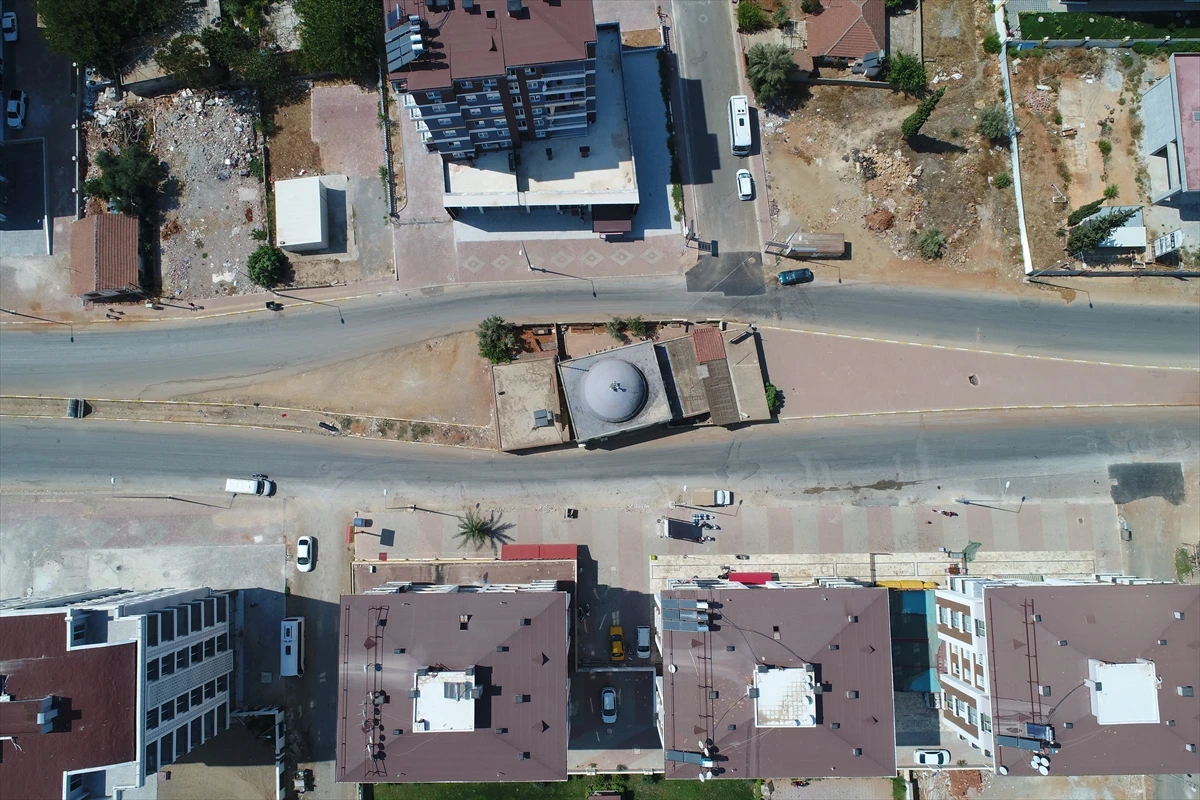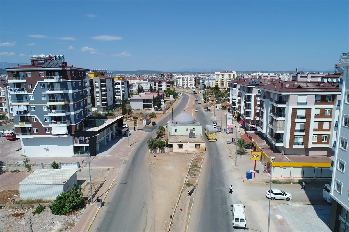 Antalya'da imar planlamasının ardından iki yol arasında kalan cami dikkati çekiyor.