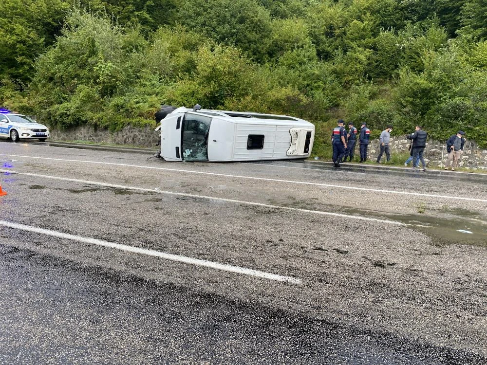 Bartın Amasra karayolunda meydana gelen kazada, seyir halinde olan İsa Yıldırım’ın kullandığı işçi servisi yağmur nedeniyle kayganlaşan yolda kontrolden çıkarak orta refüje çarpıp devrildi.