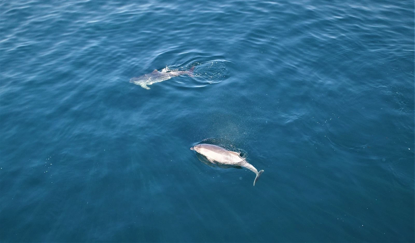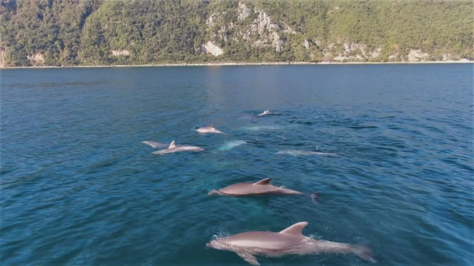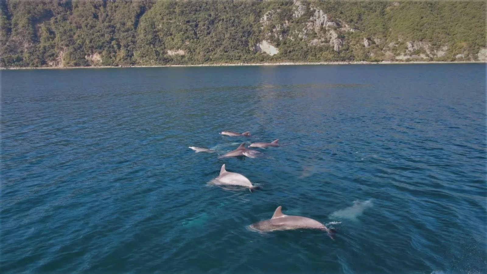 Havadan çekilen yunusların drone gördüklerinde kimi zaman derine dalarak uzaklaştıkları görülüyor. Zamanla drone alışan sürü yüzerken adeta şov yapıyorlar.