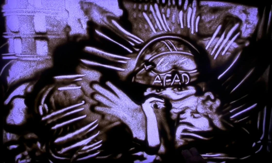 Türkiye'de ve Avrupa'nın birçok ülkesinde yüzlerce kez gösteri yapan kum sanatçısı Ömer Faruk Elmas, 30 Ekim'de İzmir'de meydana gelen 6,6 büyüklüğündeki depremde enkaz altından günler sonra kurtarılan Elif Perinçek (3) ve Ayda Gezgin'i (3) kum sanatıyla anlattı.