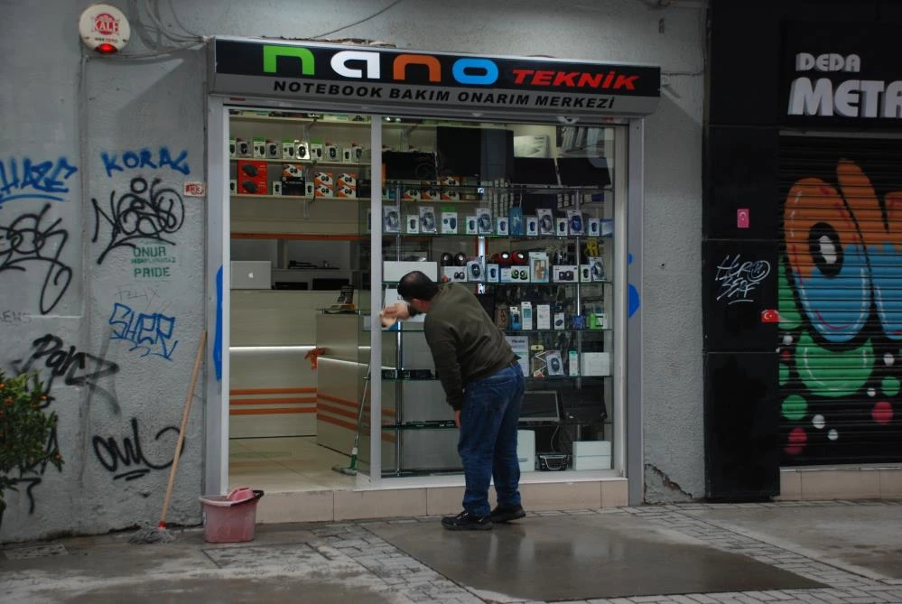 Alsancak esnafı ise dünden bu yana zarar gören dükkanlarını temizliyor.
