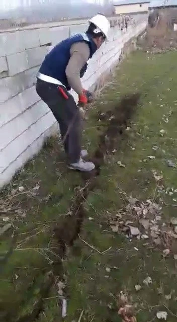 Direğin altından yer altına gömülen kablolar ekipler tarafından ortaya çıkarıldı.