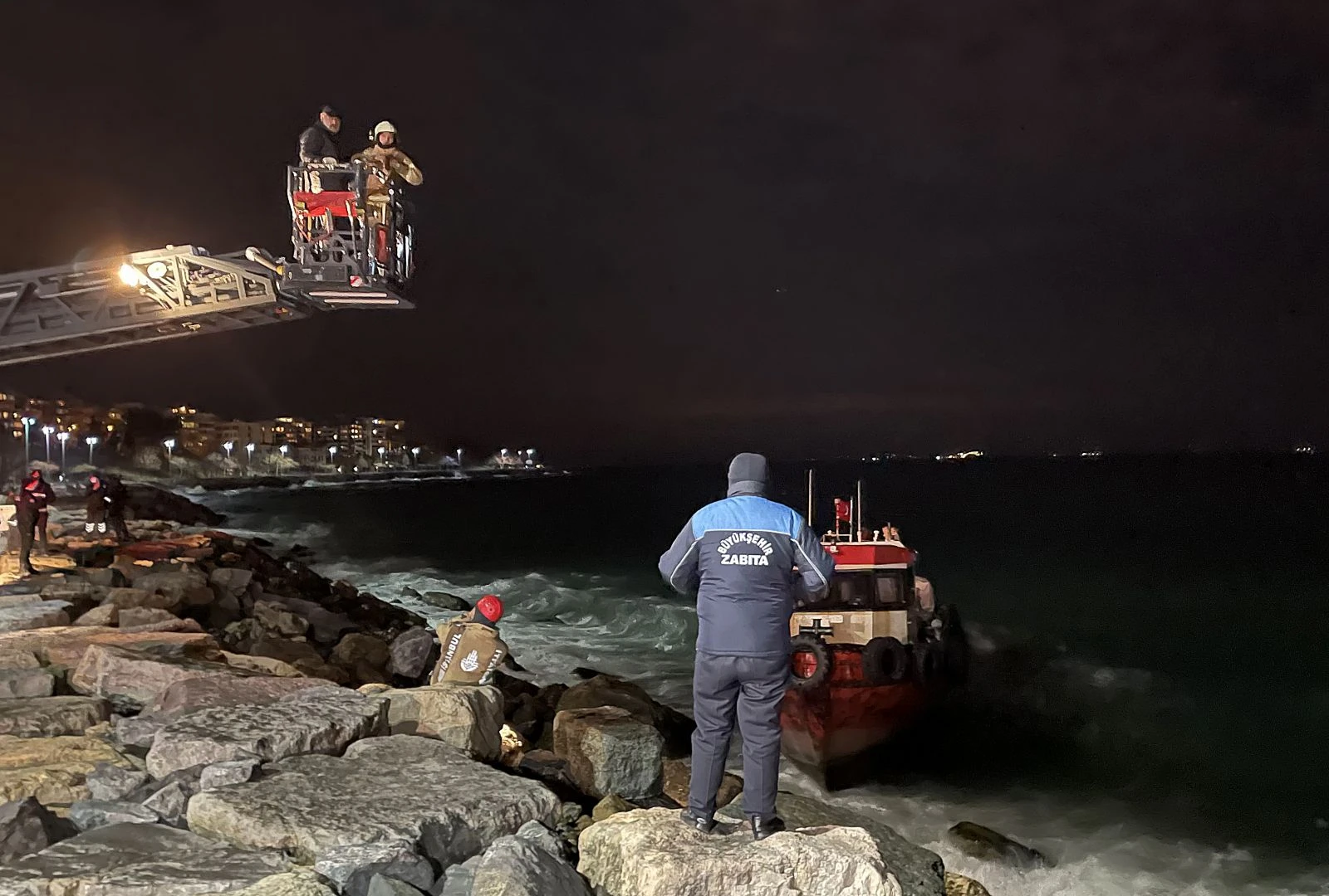 Çevredeki vatandaşların ihbarı üzerine olay yerine itfaiye, polis ve sahil güvenlik ekipleri sevk edildi. Teknede mahsur kalan iki kişi, itfaiye merdiveni yardımıyla kurtarıldı. Kurtarılan kişilerin sağlık durumlarının iyi olduğu öğrenildi.
