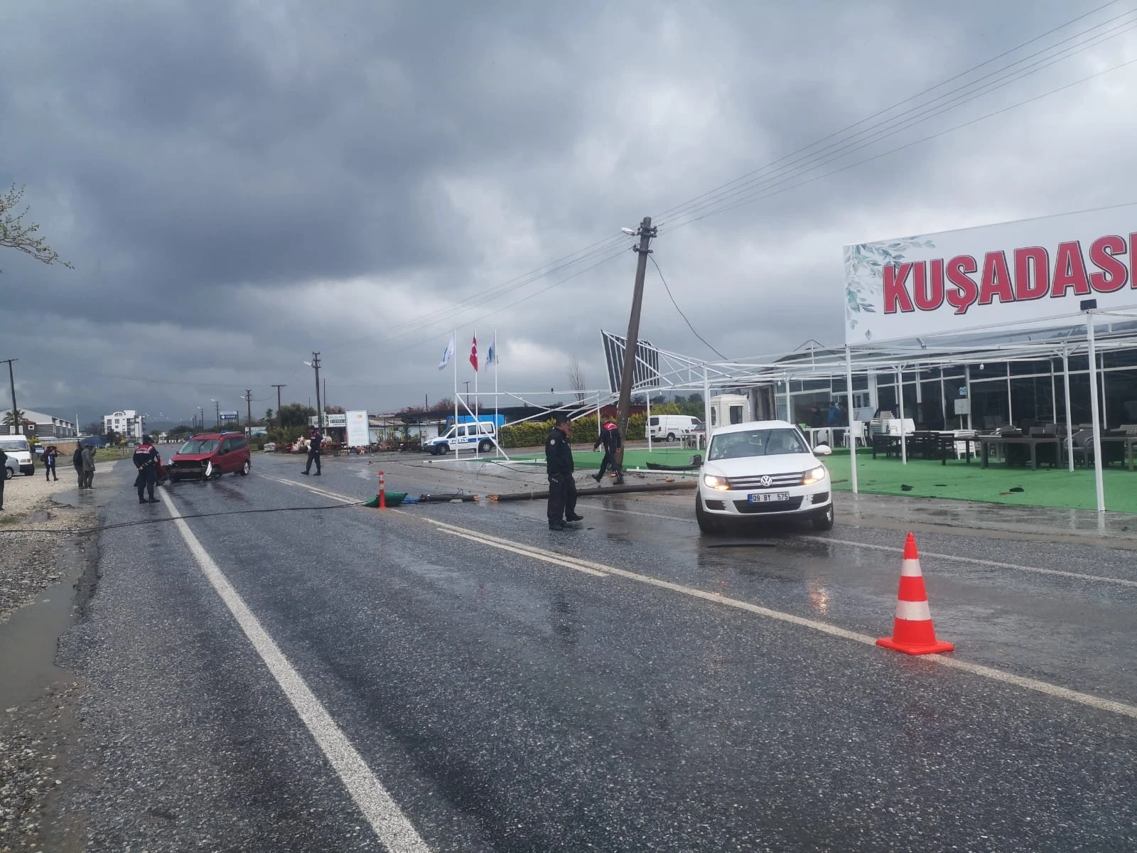 Saat 09.00 sıralarında Davutlar-Güzelçamlı yolunda, O.S. yönetimindeki 09 BG 944 plakalı otomobil sola dönüş yapmak isterken, kendisini sollayan M.A.A. yönetimindeki 09 BY 575 plakalı otomobili fark etmeyip çarptı. Çarpmanın etkisiyle direksiyon hakimiyetini kaybeden sürücüler yol kenarında bulunan beton elektrik direklerine çarptı. Kazada otomobiller kullanılamaz hale gelirken sürücüler araçlarından indi.