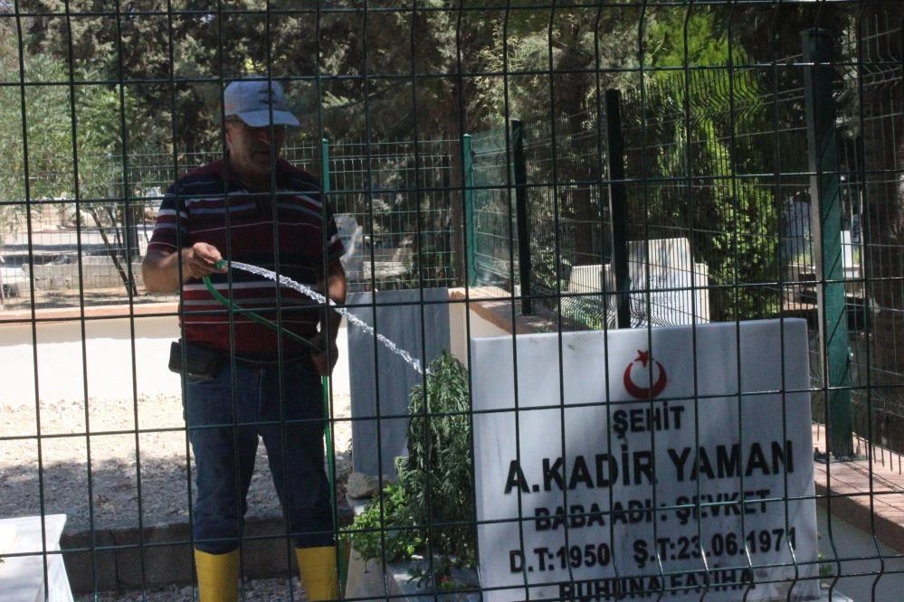 "Yıllarca burası bakımsız kalmıştı. Fatiha verenleri yoktu, şehitlerin mezar taşları yoktu, Sosyal medyadan fotoğrafları paylaşmıştım, haber olunca da Vali Bey talimat vererek, kısa sürede mezarları yaptırdı. Ben de o zaman yetkililere bakımlarını ben yapacağım diye söz vermiştim. Haftada 3 gün buraya gelerek şehit mezarlarının bakımını, sulanmasını gerçekleştiriyorum."
