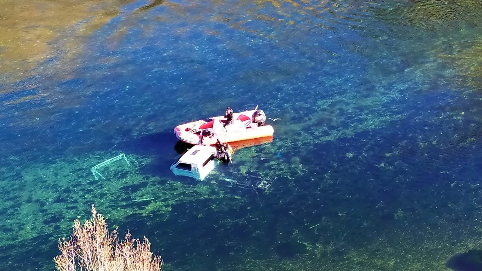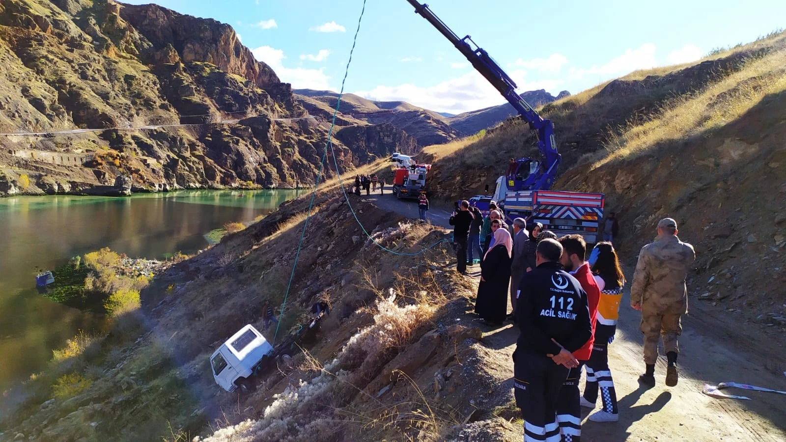 Öte yandan suya gömülen kamyonet vinç yardımı ile çıkarıldı. Bölgede su üzerinden botlarla, su altında ise dalgıç polisler tarafından arama çalışmalarının sürdüğü bildirildi.