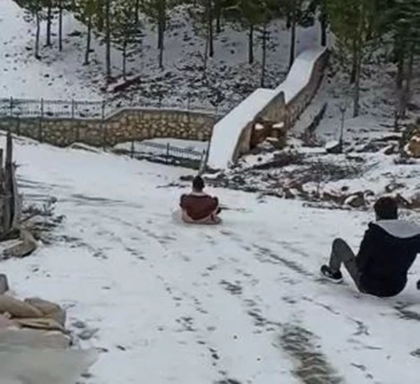 Burdur’da üniversite öğrencisi Metin Can Çelen, çocukların kar üzerinde kaydığı eğlenceli anları gördükten sonra dışarı çıktı. Kar üzerinde yokuş aşağı poşet yardımıyla kayma isteyen genç o anları arkadaşlarına kaydettirdi.