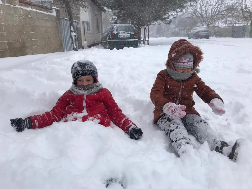 Beyaz örtü ile kaplanan şehirde, kar güzel görüntüler oluşturdu. Hafta sonu kısıtlaması olsa da minikler, karı görünce dayanamayıp, evlerinin önünde kısa süre de olsa, karın keyfini yaşadı.