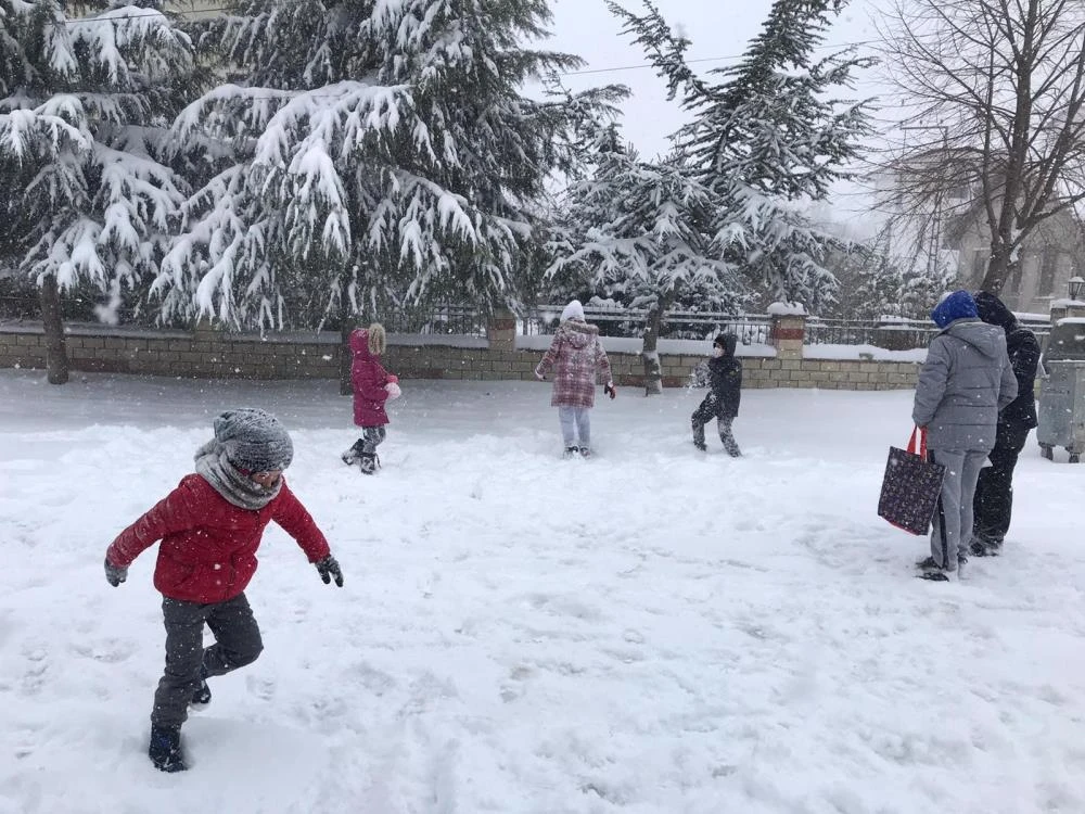 "Kar yağıyor, çok mutluyuz" diyen minik kalpler, beyaz örtünün keyfini çıkardı. Birbirleri ile kartopu savaşı oynayan çocuklar, kalınlığı 20 santimetreyi aşan kar zemininde, adeta yüzdü.