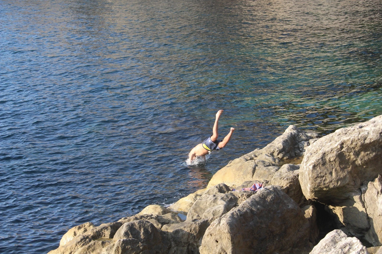 Çevredekilerin şaşkın bakışları arasında denize giren vatandaşlar kimseye aldırış etmeden sahil kenarlarında bulunan taşlardan atlayarak saatlerce denizin içerisinde kaldı.