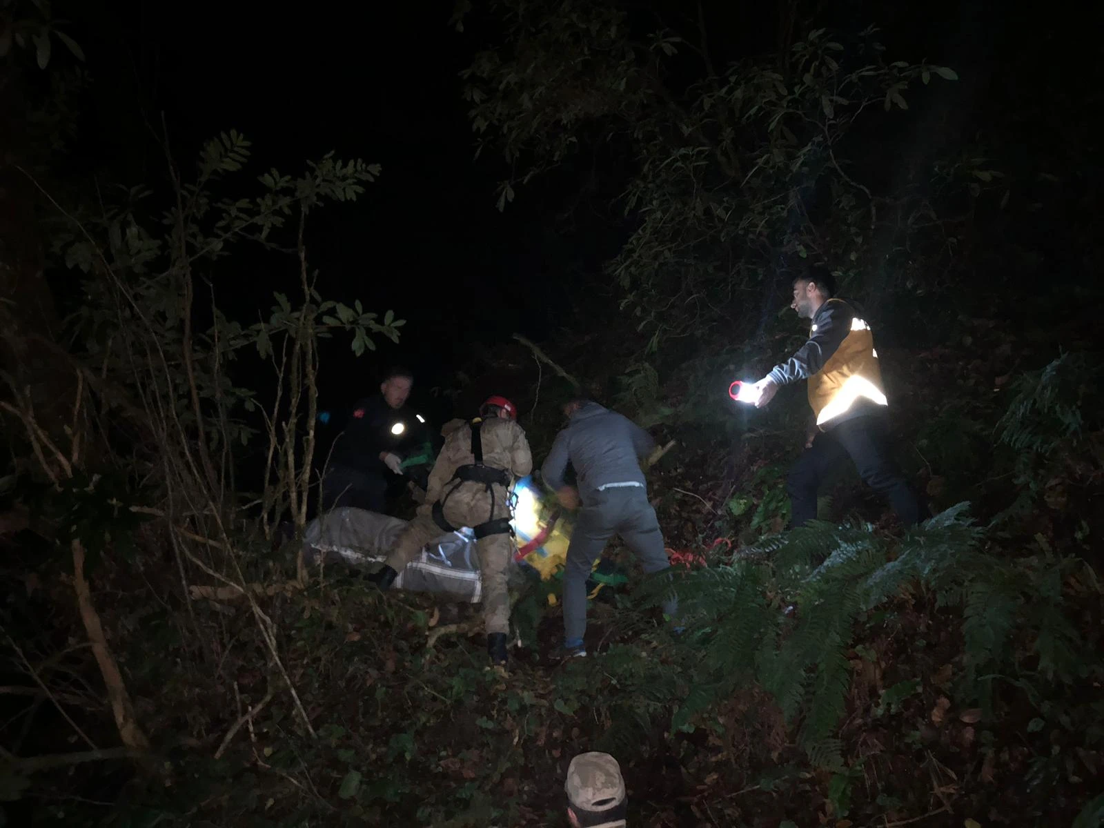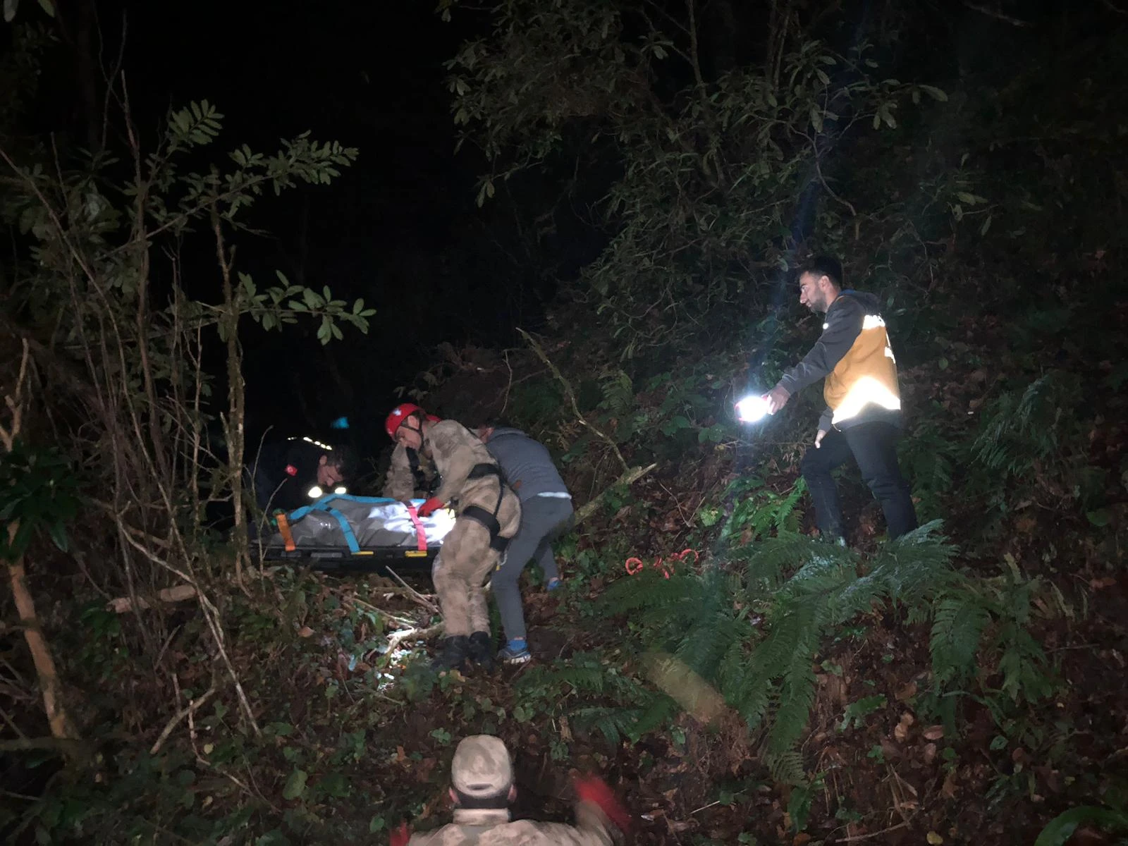 Jandarma ve 112 Acil Servis ekipleri vatandaşların da yardımıyla çiftin cesedini sarp ve ağaçlık bölgeden çıkardı.