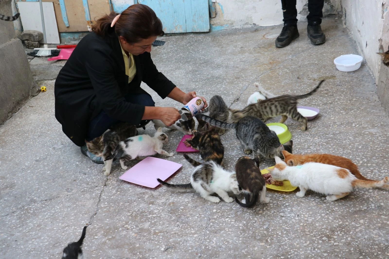 Hayvanları aşırı derecede çok sevdiğini söyleyen Hatice Alkan, “Kedi evimiz var. Ben hayvanları çok seviyorum ama benimki aşırı bir sevgi. Sokakta bir kedi görsem sanki onu almam gerekiyormuş gibi hissediyorum. Yavruları bir araya topluyorum çünkü sokakta yapamayacaklarını düşünüyorum. Küçük oldukları için kendileri yiyecek bulamayabiliyorlar. Koruyabileyim, rahatça büyütebileyim, hastalarsa tedavi ettireyim diye böyle topladım. Bir ev kiraladım adı da ‘kedi evi’ oldu. 8 sene kadar önce ilk önce tek bir kedim oldu. Kedimi çok sevdikten sonra etraftaki kedileri de fark etmeye başladım. Evimiz müstakildi, bahçemiz vardı. Kedim için bahçeye mama koyuyordum. Başka kedilerde gelmeye başladılar. Sonra sokak, sokak mahalle mahalle mama dağıtmaya başladım. Özellikle kışın bu işi daha çok yapıyorum . Hayvanlar kışın yiyecek bulmakta zorlanıyorlar" dedi.