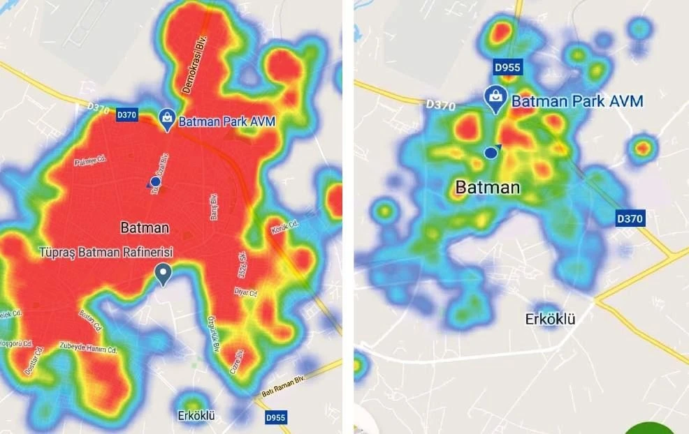 Sağlık Bakanlığının Hayat Eve Sığar mobil uygulamasında 40 gün önce Batman kent merkezinin neredeyse tamamı kırmızıya bürünmüştü. Kentte vakaların giderek artması üzerine Batman Valiliği İl Hıfzıssıhha Kurulu yeni tedbirler alınması için olağanüstü toplanmıştı.