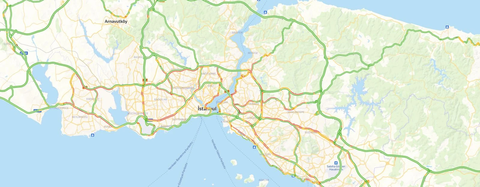 Anadolu Yakası'nda TEM otoyolunda Sultanbeyli-Çamlıca gişeler arası her iki yönde de yoğun trafik gözleniyor. D-100 kara yolunun bazı bölgelerinde yoğunluk artıyor. İBB'nin mobil uygulamasına göre, trafik yoğunluğu saat 07.45 itibarıyla yüzde 54 olarak ölçüldü.
