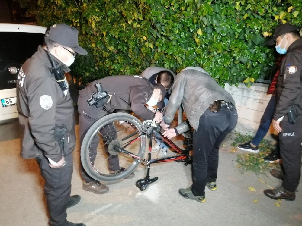 Koronavirüs salgınıyla mücadele kapsamında uygulanan tam kapanmalı sokağa çıkma kısıtlamasında devriye gezen mahalle ve çarşı bekçileri Meydan Mahallesi 961 Sokakta durumundan şüphelendikleri bisikletli şahsa 'dur' ihtarında bulundu.