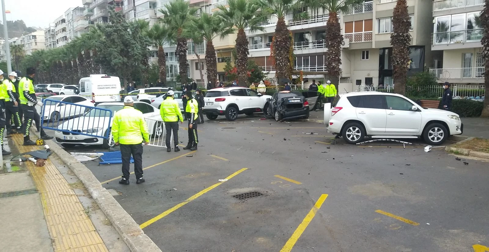 Saat 12.00 sıralarında Mustafa Kemal Sahil Bulvarı'nda A.E. isimli sürücü, 09 SK 177 plakalı otomobiliyle Konak yönüne doğru seyrederken önüne bir yaya çıkmasıyla direksiyon hakimiyetini kaybetti. Kontrolden çıkan otomobil, önce refüje ardından da tramvay yolunun yanındaki bariyerleri yıkıp yolun alt kısmında yer alan otoparka girdi.