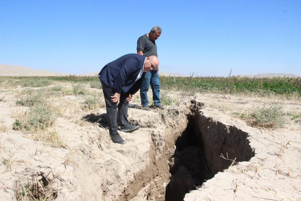 Merkeze bağlı Çoğlu köyü Uzunkuyu mevkisinde bulunan bir pancar tarlasında yaklaşık 150-200 metreye uzunluğunda ciddi bir yüzey yarık gördüklerini ifade eden Bayram, “Bunların nedenlerine bakmak gerekiyor. Küresel ısınma, suyun aşırı kullanımı ve kuraklığın etkisiyle yeraltı sularımızın çekilmesinden dolayı Konya’nın Karapınar ilçesinde 500’ün üzerinde obruk oluşmuştu. Geçtiğimiz günlerde yine Konya’nın Adakale Mahallesi ile Emirgazi ve Karapınar ilçelerinde oluşan yüzey yarıkları bizim bölgemizde de görünmeye başladı" dedi.