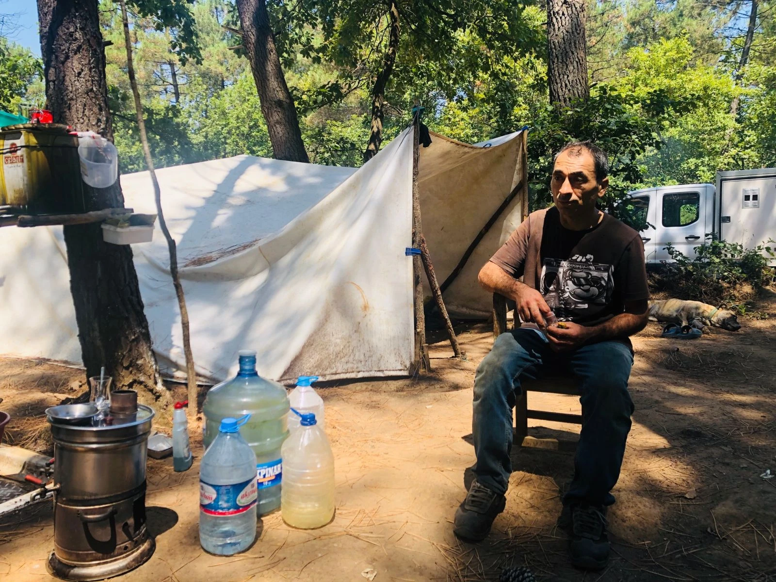 10 yıl önce memleketi Tokat’tan İstanbul’a gelerek iş arayan kaynak işçisi 43 yaşındaki Lütfü Özcan iş bulamayınca ormanlarda yaşamaya başladı. 6 yıldır ormanlarda yaşayan Özcan’ın son durağı Sultanbeyli sınırlarında yer alan Mecidiye Mahallesi ormanlık alanı oldu. Özcan, 4 aydır burada çadırda 3 köpeği ile yaşam mücadelesi veriyordu.