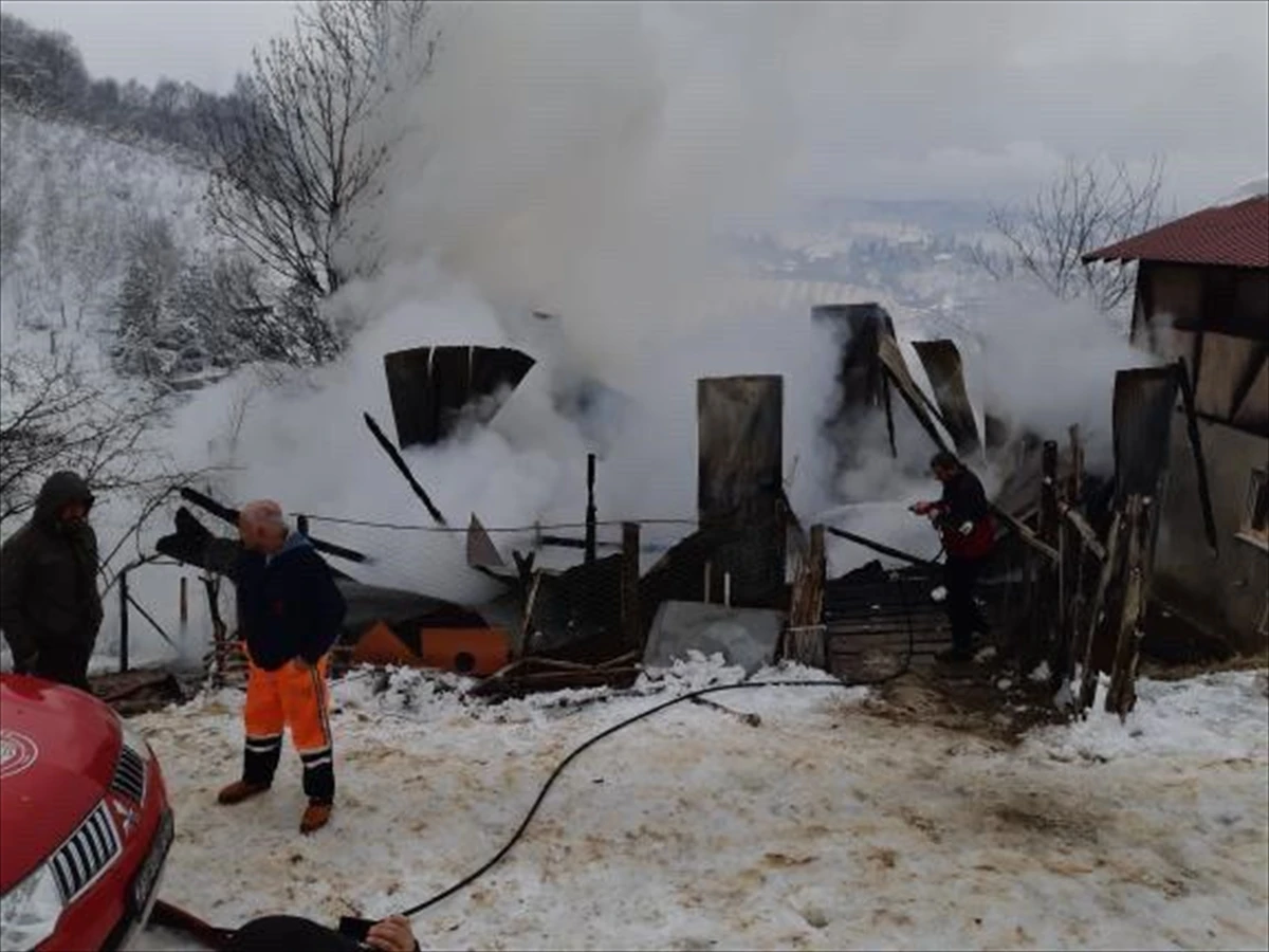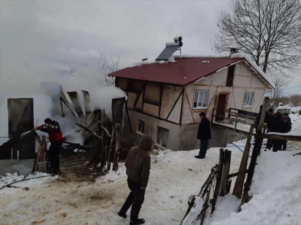 Köylülerin yardımıyla itfaiye ekiplerince söndürülen yangın, ahırda hasara yol açtı.