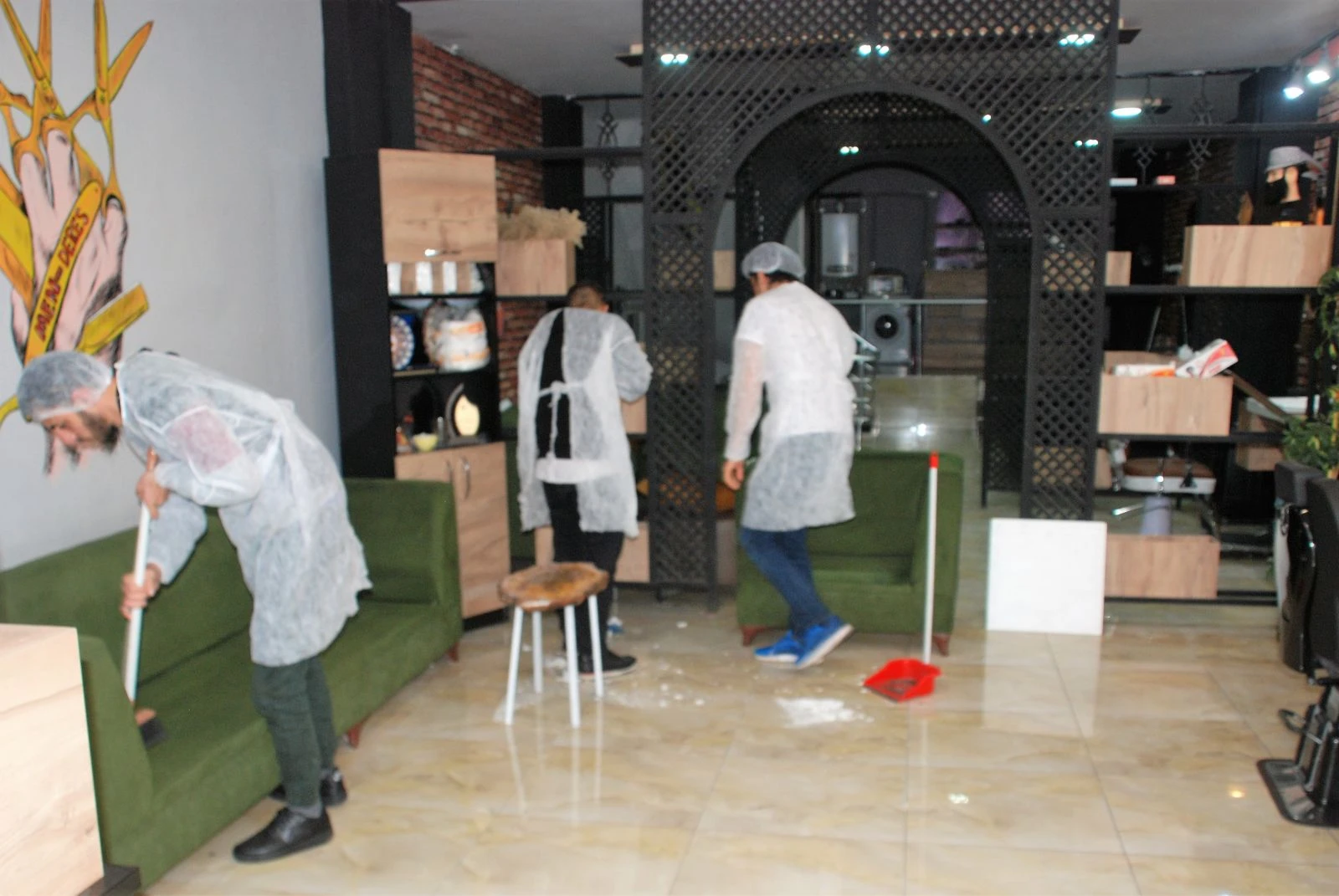 Cumhurbaşkanı Recep Tayyip Erdoğan'ın berber ve kuaför salonlarının 11 Mayıs'ta faaliyete başlayacağı açıklamasının ardından uzun süredir kapalı olan iş yerlerinde temizlik çalışmaları başlatıldı.