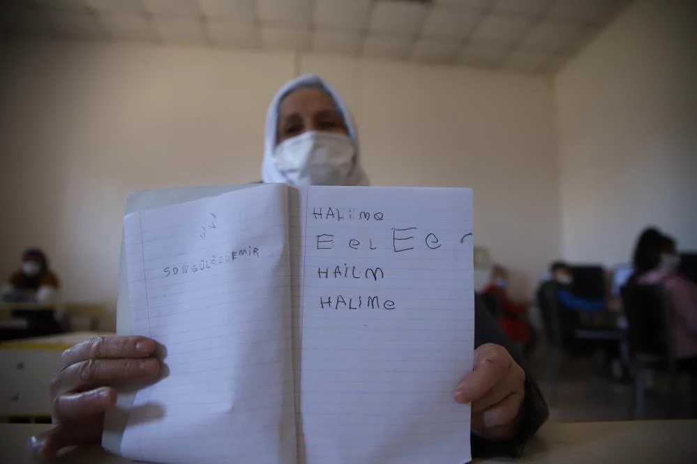 Cumhurbaşkanı Recep Tayyip Erdoğan’ın eşi Emine Erdoğan’ın başlattığı okuma yazma seferberliğini kapsamında kurslar düzenlenmeye devam ediyor. Bu kapsamda İl Milli Eğitim Müdürlüğüne bağlı Halk Eğitimi Merkezi tarafından Hicret Mahallesi Sosyal Tesislerinde muhtarlığında desteğiyle okuma yazma bilmeyen kadınlara yönelik düzenli kurs açıldı. Açılan kurslarda şuana kadar yaklaşık bin kişi okuma yazma öğrendi. Son açılan kursa da bir çok kadın gibi gençliğinde imkansızlıklardan dolayı okula gidemeyen 7 çocuk 3 torun sahibi 70 yaşındaki Halime Şahin’de katıldı. Şahin, ilerleyen yaşına rağmen içindeki Kur’an-ı Kerim okuma aşkından dolayı okuma yazma kursuna kayıt olurken, azmiyle de örnek oldu.