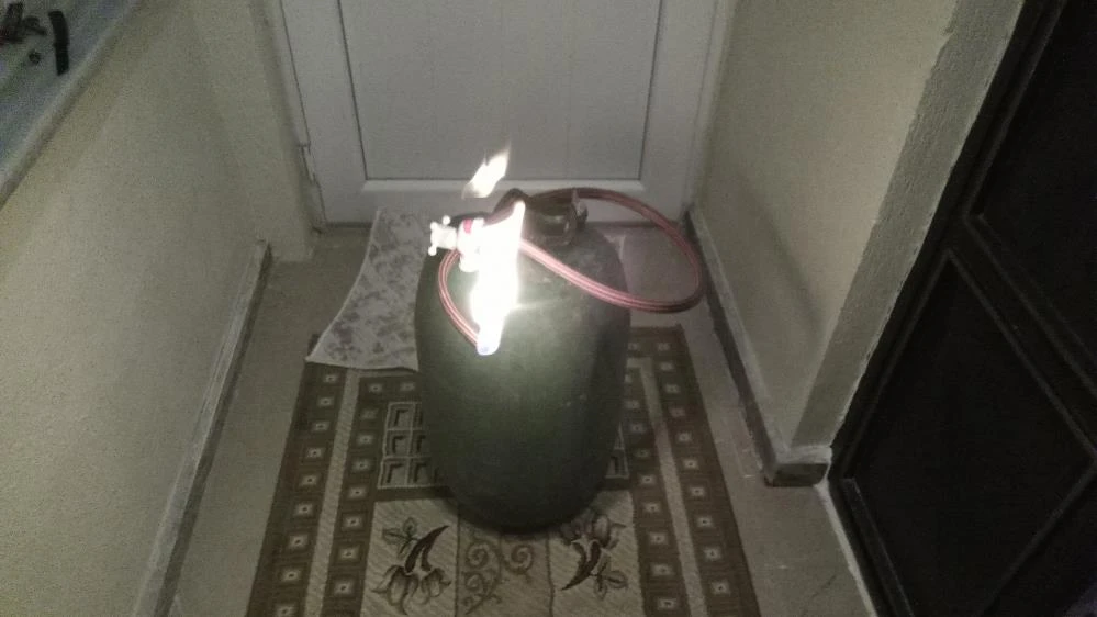 Ben hızlı bir yöntem buldum. Biyogazın oluşumunu beklemek yerine, kompresör yardımıyla düzeneğe subap yerleştirip hava bastım. Bu şekilde tankın içindeki atık köpürüyor ve içinde sıkışıyor. Bu hem süreyi kısaltıyor hem de yanıcı etkiyi attırıyor. Beklemek yerine havayla sıkıştırmanın daha mantıklı olduğunu gördüm. Bunu ben buldum. Bu daha kolay bir yöntem.