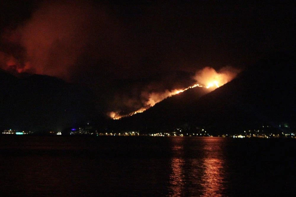 Yangın, karadan ve havadan yapılan tüm müdahalelere rağmen, Osmaniye, Bayır, Turgut, Çiftlik ve Turunç mahallelerinde etkisini sürdürdü. Havanın kararmasından sonra helikopterler devre dışı kalırken, arazöz ve itfaiye araçları gece boyunca yangına müdahale etti
