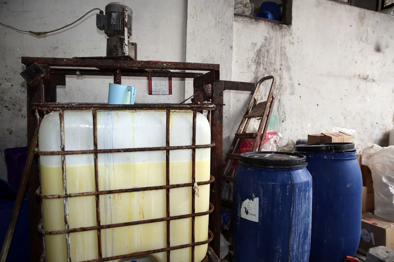 Depoda; bulaşık deterjanından sıvı sabuna, çamaşır deterjanlarından şampuana, vatandaşların en çok kullandığı temizlik ürünlerinin kirli maşrapalarla, kirli kovalarla, küreklerle yerlerde hazırlandığı tespit edildi.