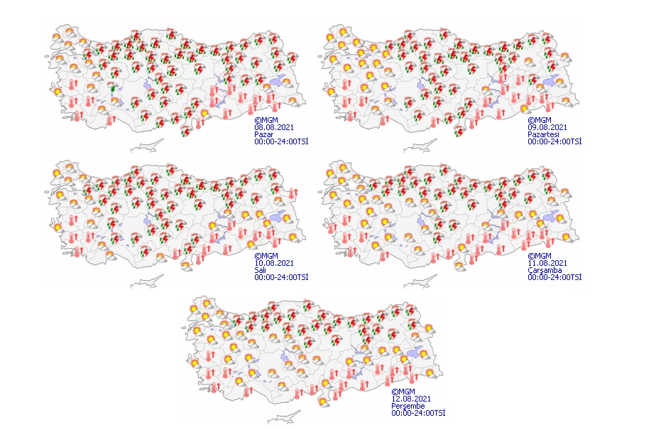 Yağışların; Batı ve Orta Karadeniz ile Kocaeli, Çankırı, Yozgat, Giresun, Adana'nın kuzeyi, Kayseri ve Niğde çevrelerinde kuvvetli, Sakarya, Zonguldak, Düzce, Samsun ve Ordu ile Giresun’un batısında yer yer çok kuvvetli ve şiddetli olması bekleniyor.