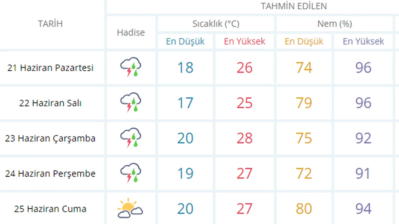 Yağmur Batı Karadeniz'in Bolu, Düzce, Karabük, Zonguldak ve Bartın illerinde, İç Anadolu'da Ankara ve Eskişehir çevrelerinde görülecek. Öğle saatlerinden itibaren İç Ege'de Afyon, Kütahya, Uşak ve Denizli'de, Batı Akdeniz'in iç kesimlerinde ise Burdur, Isparta ve Antalya'da kuvvetli yağmur bekleniyor. Muğla, Konya, Bilecik ve Bursa'da da yağışlı hava etkili olacak.