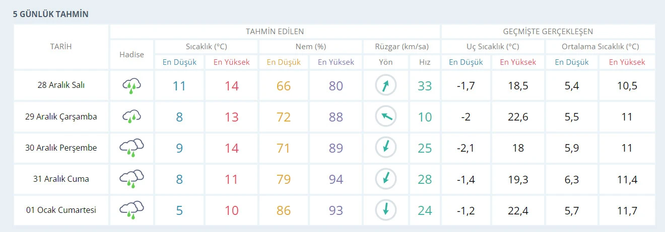 Rüzgarın ise genellikle güney, güneydoğu kesimler ile Doğu Akdeniz kıyılarında kuzeyli yönlerden hafif, ara sıra orta kuvvette eseceği tahmin ediliyor.