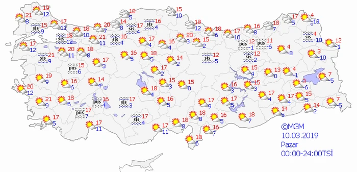 10 Mart 2019 Pazar hava durumu tahmini: