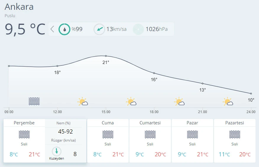 Yurdun kuzey ve doğu kesimlerinin parçalı yer yer çok bulutlu, öğle saatlerinden sonra Van ve Hakkari çevrelerinin yağmur ve sağanak yağışlı, diğer yerlerin az bulutlu ve açık geçeceği tahmin ediliyor. Sabah ve gece saatlerinde Marmara ile yurdun kuzey, iç ve doğu kesimlerinde yer yer pus ve sis hadisesi bekleniyor.