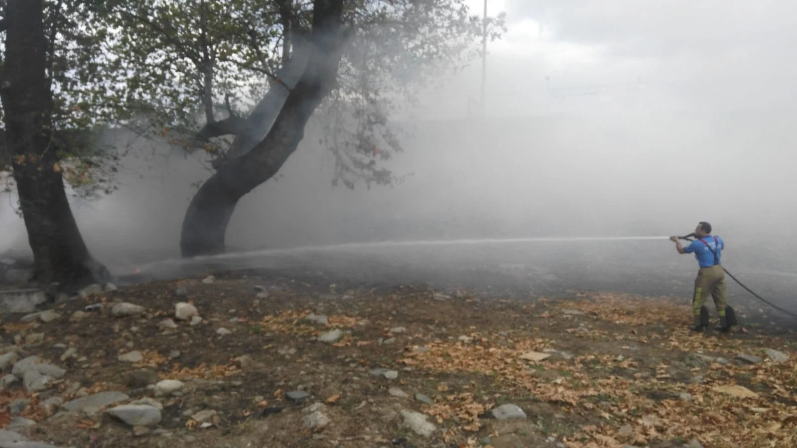 Arsadaki ağaçların ve otların alevlere teslim olduğu yangın kısa zamanda yayılırken, olayı fark eden mahalle sakinleri itfaiyeye haber verdi.