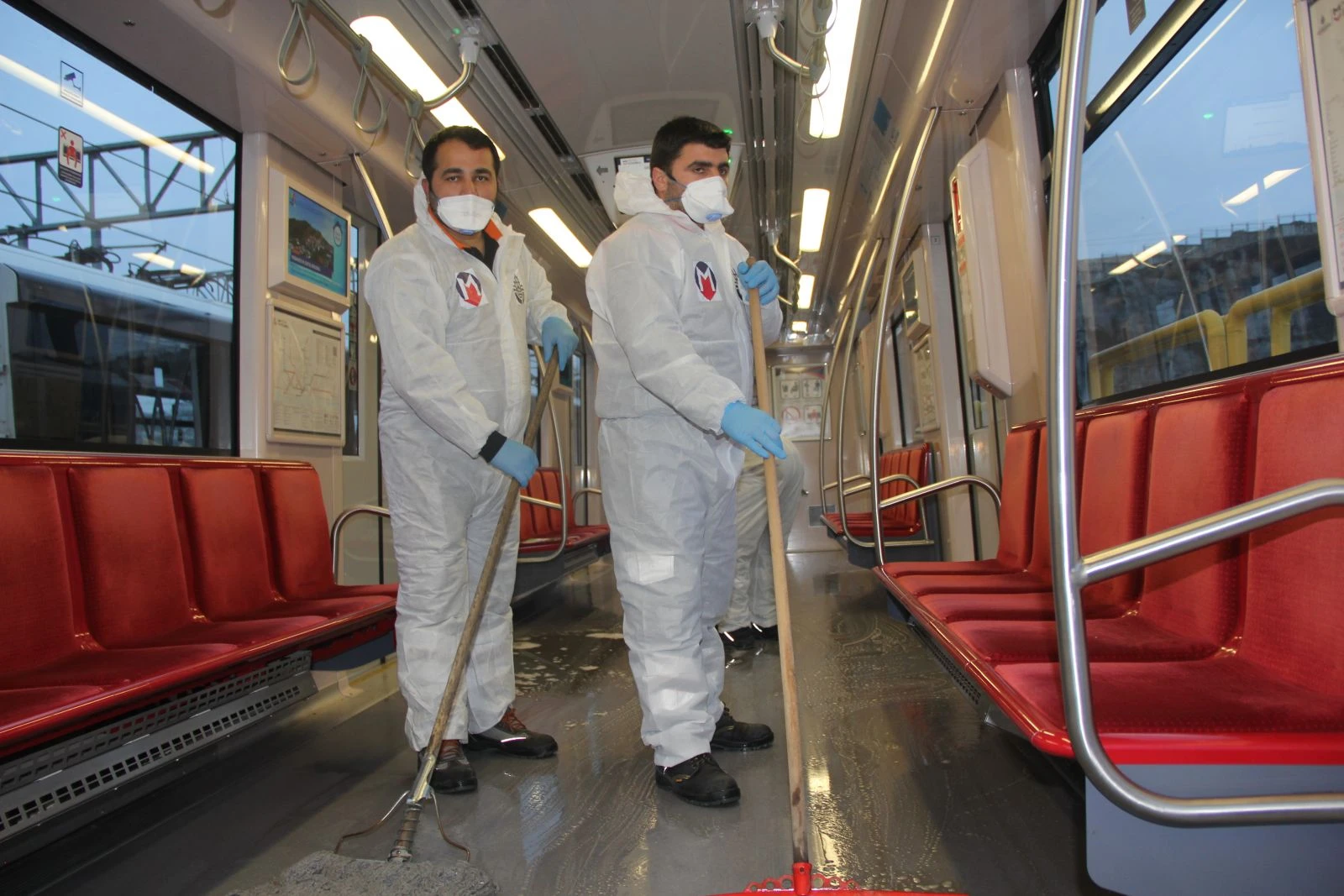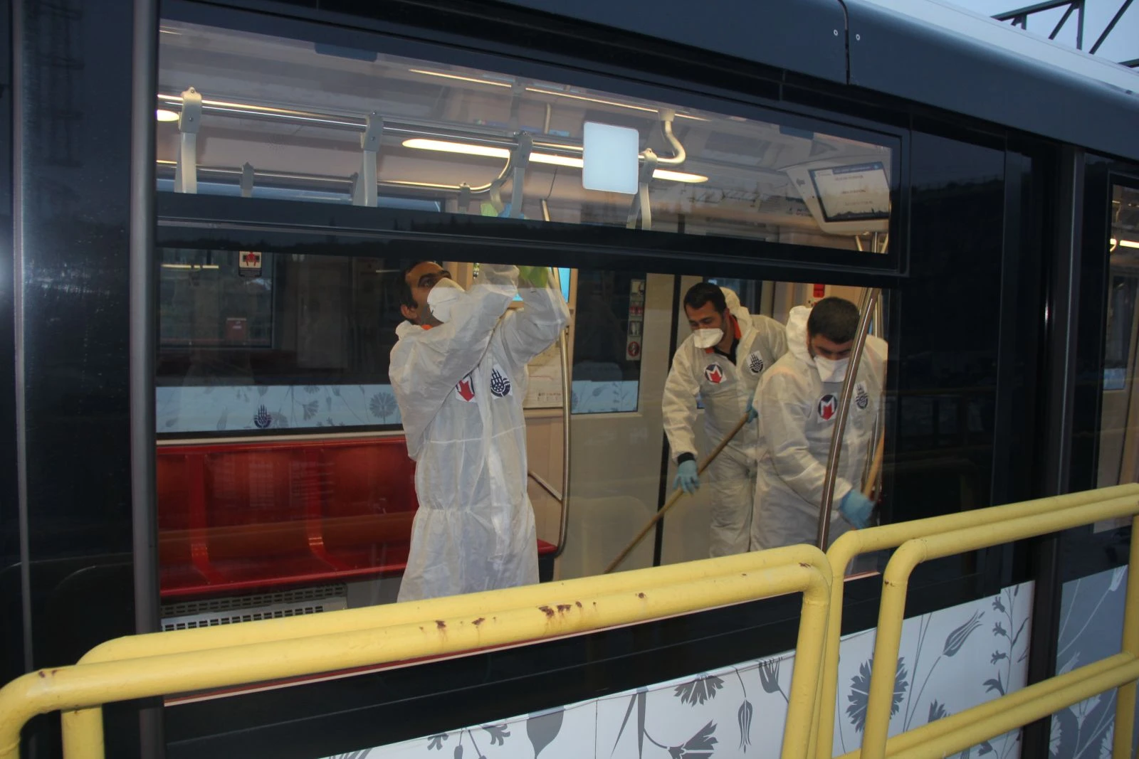 Kirazlı Olimpiyat Başakşehir Metro Hattı İstasyon Şefi Recep Çakıroğlu, İstanbulluların güvenli şekilde yolculuk etmeleri için saat 21.00'den itibaren her hattın belirlenen araç yıkama alanlarında, çalışma yapıldığını anlattı.