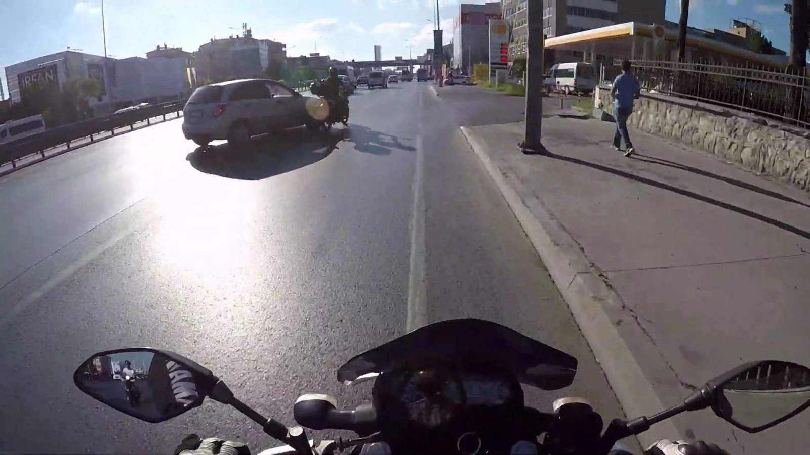 Çevredeki sürücülerin araya girmesiyle tartışma büyümeden önlenirken, taraflar ise birbirinden uzaklaştırıldı. Kaza anı ve sonrasında yaşananlar ise kask kamerasına yansıdı.
