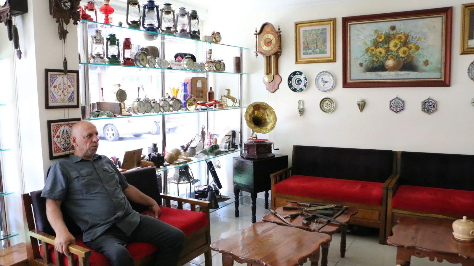 54 yaşındaki Celalettin Avcıoğlu’nun antika eşyalarla donattığı çay evi görenlerin dikkatini çekiyor. Buraya gelen müşteriler, nostalji tarzda dizayn edilmiş çay evini ve antika eşyalarla süslenmiş vitrini görünce adeta geçmişe gidiyor. Farklı türlerde yüzlerce antika eşyanın yer alması da çay evinde adeta bir müze havası oluşmasını sağlıyor.