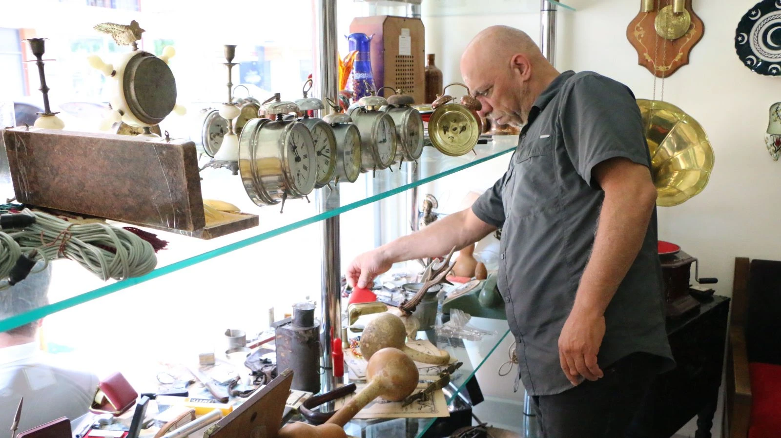 Gaz ocakları, ütüler, daktilo, hesap makinesi gibi antika eşyaları 17-18 sene önce bir pazarda gördüğünü söyleyen Avcıoğlu, “Bende bir merak oluştu. Zaman içerisinde tabii elimizde birikti. Hakikaten ben bu işi şu anda çok seviyorum. Amatörce yani sevdiğim için yapıyorum. Zevk duyuyorum bu işten daha doğrusu. Antika işi böyle başladı” dedi.